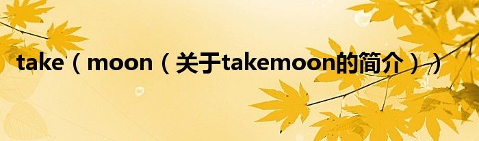 大家好,take moon,關于take moon的簡介很多人還不知道,現在讓我們一起來看看吧!