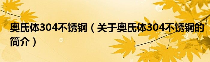 本文關(guān)于奧氏體304不銹鋼的簡介就講解完畢,希望對大家有所幫助。