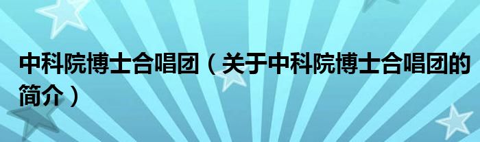 大家好,中科院博士合唱團,關于中科院博士合唱團的簡介很多人還不知道,現在讓我們一起來看看吧!
