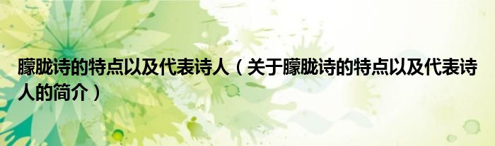 本文關于朦朧詩的特點以及代表詩人的簡介就講解完畢,希望對大家有所幫助。