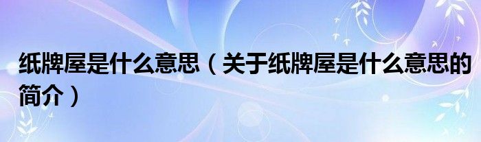 本文關于紙牌屋是什么意思的簡介就講解完畢,希望對大家有所幫助。