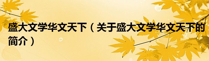 本文關(guān)于盛大文學(xué)華文天下的簡(jiǎn)介就講解完畢,希望對(duì)大家有所幫助。