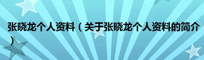 本文關于張曉龍個人資料的簡介就講解完畢,希望對大家有所幫助。