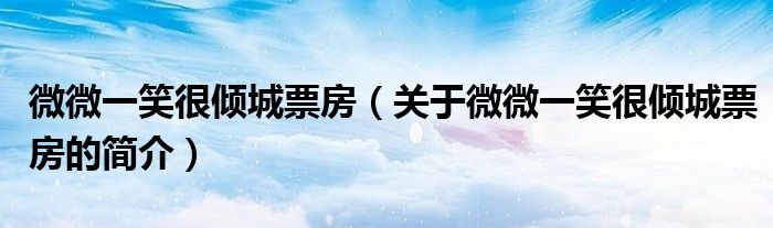 大家好,微微一笑很傾城票房,關(guān)于微微一笑很傾城票房的簡介很多人還不知道,現(xiàn)在讓我們一起來看看吧!