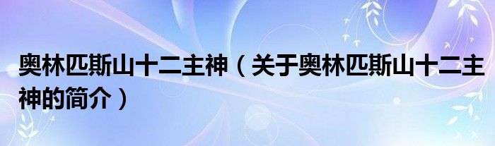 大家好,奧林匹斯山十二主神,關(guān)于奧林匹斯山十二主神的簡介很多人還不知道,現(xiàn)在讓我們一起來看看吧!