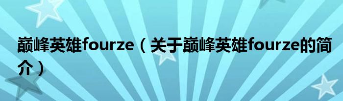 本文關于巔峰英雄fourze的簡介就講解完畢,希望對大家有所幫助。