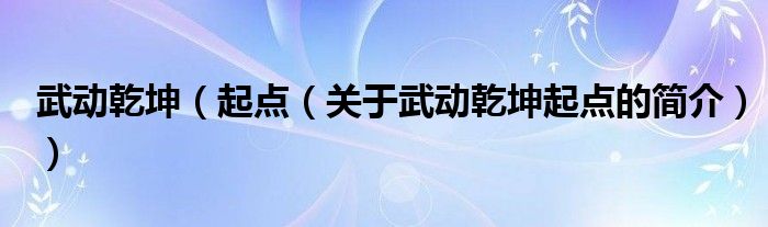 本文關于武動乾坤 起點的簡介就講解完畢,希望對大家有所幫助。