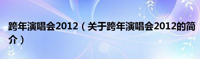 本文關(guān)于跨年演唱會2012的簡介就講解完畢,希望對大家有所幫助。