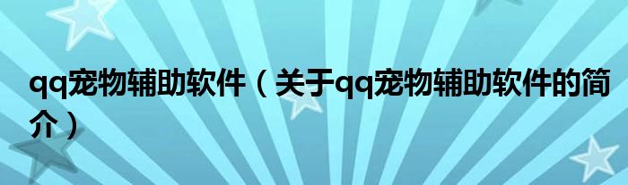 本文關于qq寵物輔助軟件的簡介就講解完畢,希望對大家有所幫助。