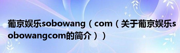 本文關于葡京娛樂sobowang com的簡介就講解完畢,希望對大家有所幫助。