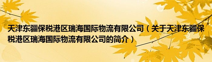 本文關于天津東疆保稅港區瑞海國際物流有限公司的簡介就講解完畢,希望對大家有所幫助。