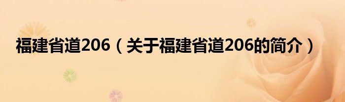 本文關于福建省道206的簡介就講解完畢,希望對大家有所幫助。