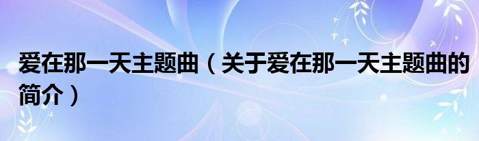 本文關(guān)于愛在那一天主題曲的簡介就講解完畢,希望對大家有所幫助。