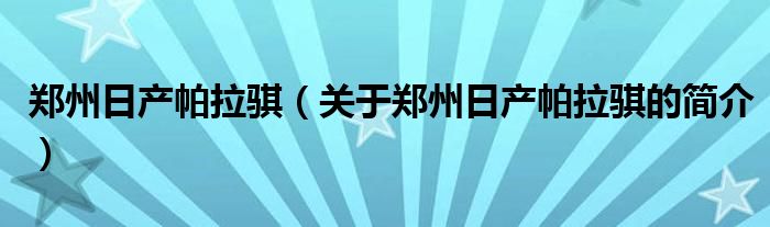 本文關(guān)于鄭州日產(chǎn)帕拉騏的簡介就講解完畢,希望對大家有所幫助。
