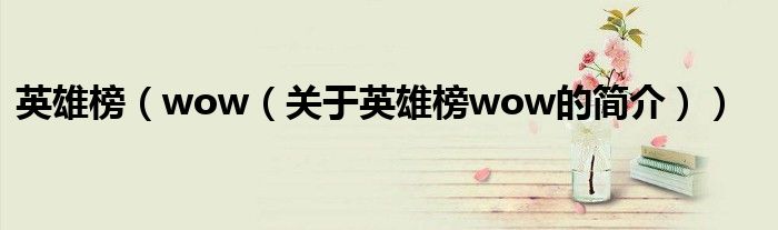 本文關于英雄榜 wow的簡介就講解完畢,希望對大家有所幫助。