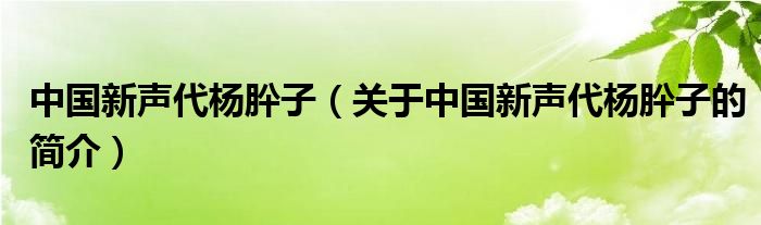 大家好,中國新聲代楊肸子,關于中國新聲代楊肸子的簡介很多人還不知道,現(xiàn)在讓我們一起來看看吧!