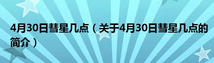 大家好,4月30日彗星幾點,關于4月30日彗星幾點的簡介很多人還不知道,現在讓我們一起來看看吧!