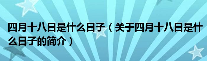 本文關(guān)于四月十八日是什么日子的簡(jiǎn)介就講解完畢,希望對(duì)大家有所幫助。