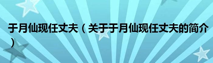 本文關(guān)于于月仙現(xiàn)任丈夫的簡(jiǎn)介就講解完畢,希望對(duì)大家有所幫助。