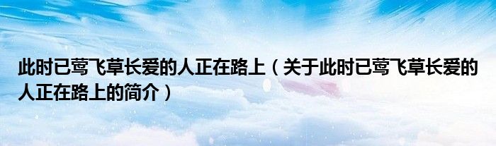 本文關于此時已鶯飛草長愛的人正在路上的簡介就講解完畢,希望對大家有所幫助。