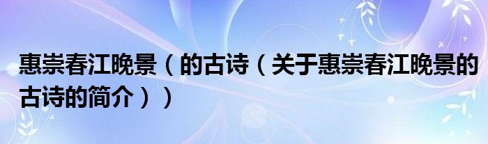 本文關(guān)于惠崇春江晚景 的古詩的簡介就講解完畢,希望對大家有所幫助。