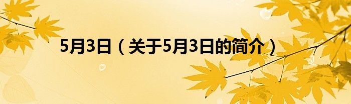 大家好,5月3日,關于5月3日的簡介很多人還不知道,現在讓我們一起來看看吧!