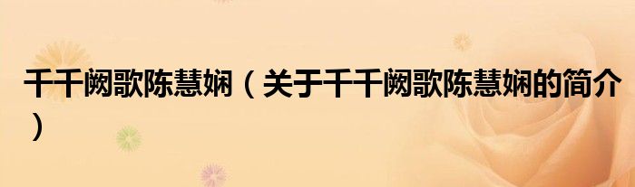 本文關于千千闕歌陳慧嫻的簡介就講解完畢,希望對大家有所幫助。