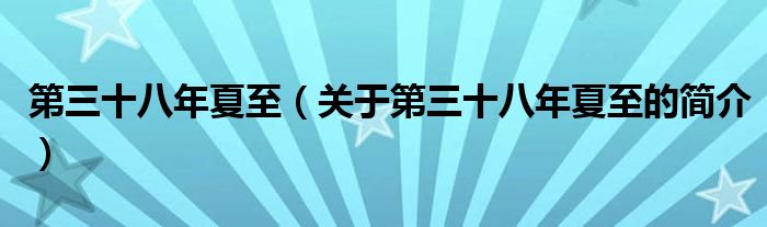 大家好,第三十八年夏至,關(guān)于第三十八年夏至的簡介很多人還不知道,現(xiàn)在讓我們一起來看看吧!