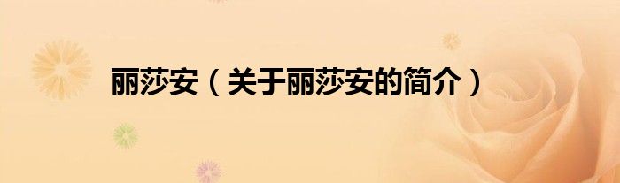 大家好,麗莎安,關于麗莎安的簡介很多人還不知道,現在讓我們一起來看看吧!