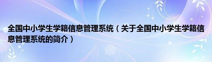 大家好,全國中小學生學籍信息管理系統,關于全國中小學生學籍信息管理系統的簡介很多人還不知道,現在讓我們一起來看看吧!