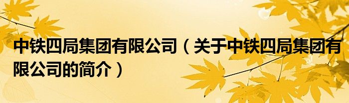 本文關于中鐵四局集團有限公司的簡介就講解完畢,希望對大家有所幫助。