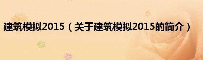 大家好,建筑模擬2015,關于建筑模擬2015的簡介很多人還不知道,現在讓我們一起來看看吧!