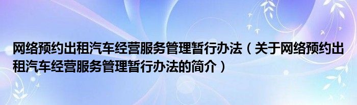 本文關于網絡預約出租汽車經營服務管理暫行辦法的簡介就講解完畢,希望對大家有所幫助。
