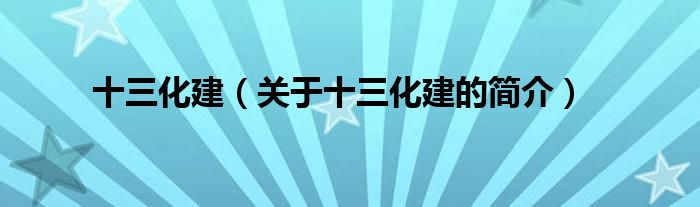 本文關于十三化建的簡介就講解完畢,希望對大家有所幫助。