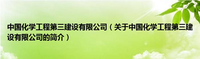本文關于中國化學工程第三建設有限公司的簡介就講解完畢,希望對大家有所幫助。