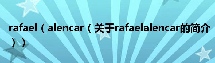 大家好,rafael alencar,關于rafael alencar的簡介很多人還不知道,現在讓我們一起來看看吧!