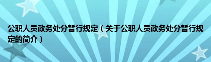 本文關于公職人員政務處分暫行規定的簡介就講解完畢,希望對大家有所幫助。