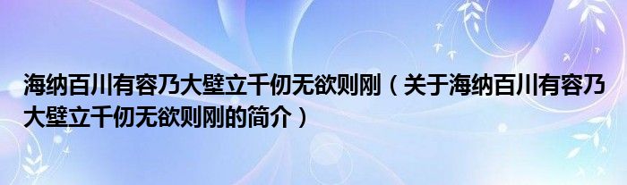 本文關(guān)于海納百川有容乃大壁立千仞無欲則剛的簡(jiǎn)介就講解完畢,希望對(duì)大家有所幫助。
