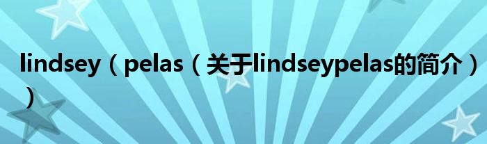 大家好,lindsey pelas,關(guān)于lindsey pelas的簡介很多人還不知道,現(xiàn)在讓我們一起來看看吧!