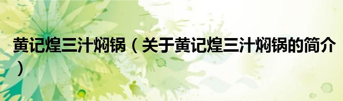 本文關于黃記煌三汁燜鍋的簡介就講解完畢,希望對大家有所幫助。