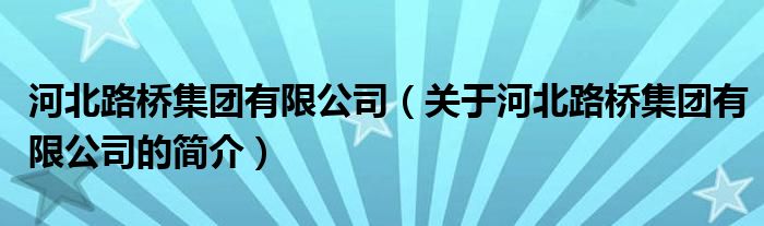 本文關于河北路橋集團有限公司的簡介就講解完畢,希望對大家有所幫助。