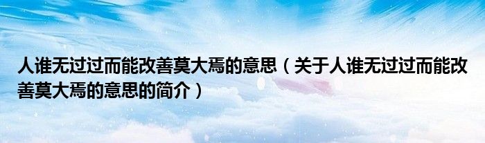 本文關于人誰無過過而能改善莫大焉的意思的簡介就講解完畢,希望對大家有所幫助。