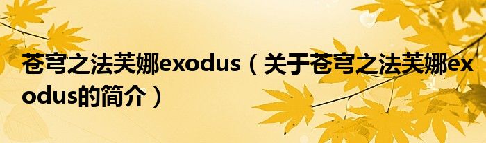 本文關于蒼穹之法芙娜exodus的簡介就講解完畢,希望對大家有所幫助。