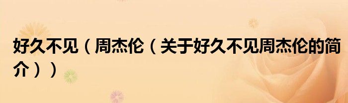 大家好,好久不見 周杰倫,關(guān)于好久不見 周杰倫的簡介很多人還不知道,現(xiàn)在讓我們一起來看看吧!