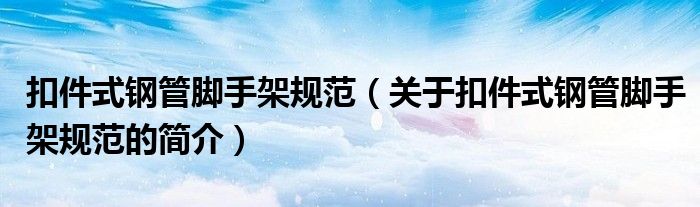 大家好,扣件式鋼管腳手架規(guī)范,關(guān)于扣件式鋼管腳手架規(guī)范的簡(jiǎn)介很多人還不知道,現(xiàn)在讓我們一起來看看吧!