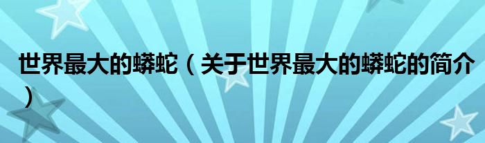 本文關于世界最大的蟒蛇的簡介就講解完畢,希望對大家有所幫助。