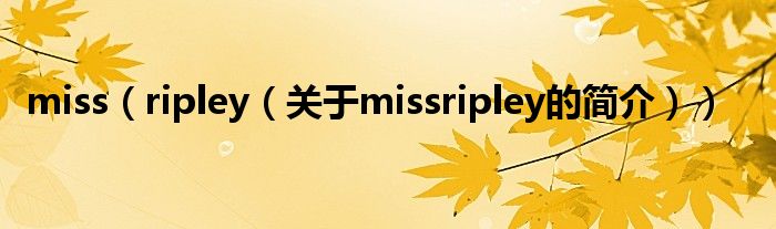 大家好,miss ripley,關于miss ripley的簡介很多人還不知道,現在讓我們一起來看看吧!
