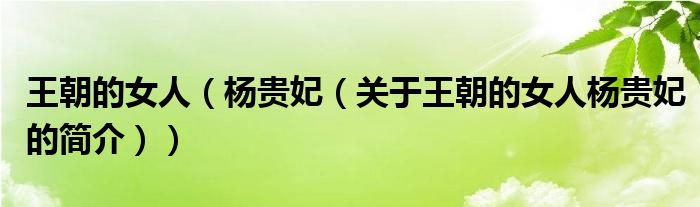 本文關于王朝的女人 楊貴妃的簡介就講解完畢,希望對大家有所幫助。
