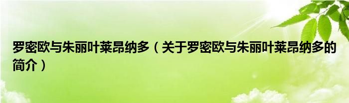 本文關于羅密歐與朱麗葉萊昂納多的簡介就講解完畢,希望對大家有所幫助。