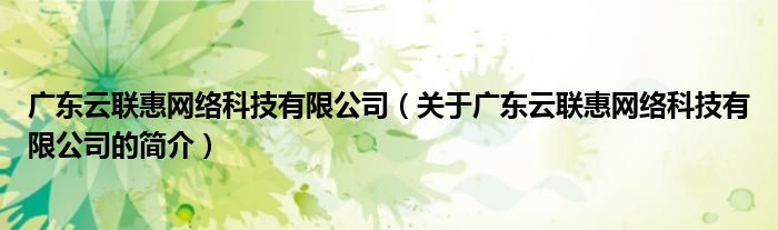 本文關(guān)于廣東云聯(lián)惠網(wǎng)絡(luò)科技有限公司的簡(jiǎn)介就講解完畢,希望對(duì)大家有所幫助。